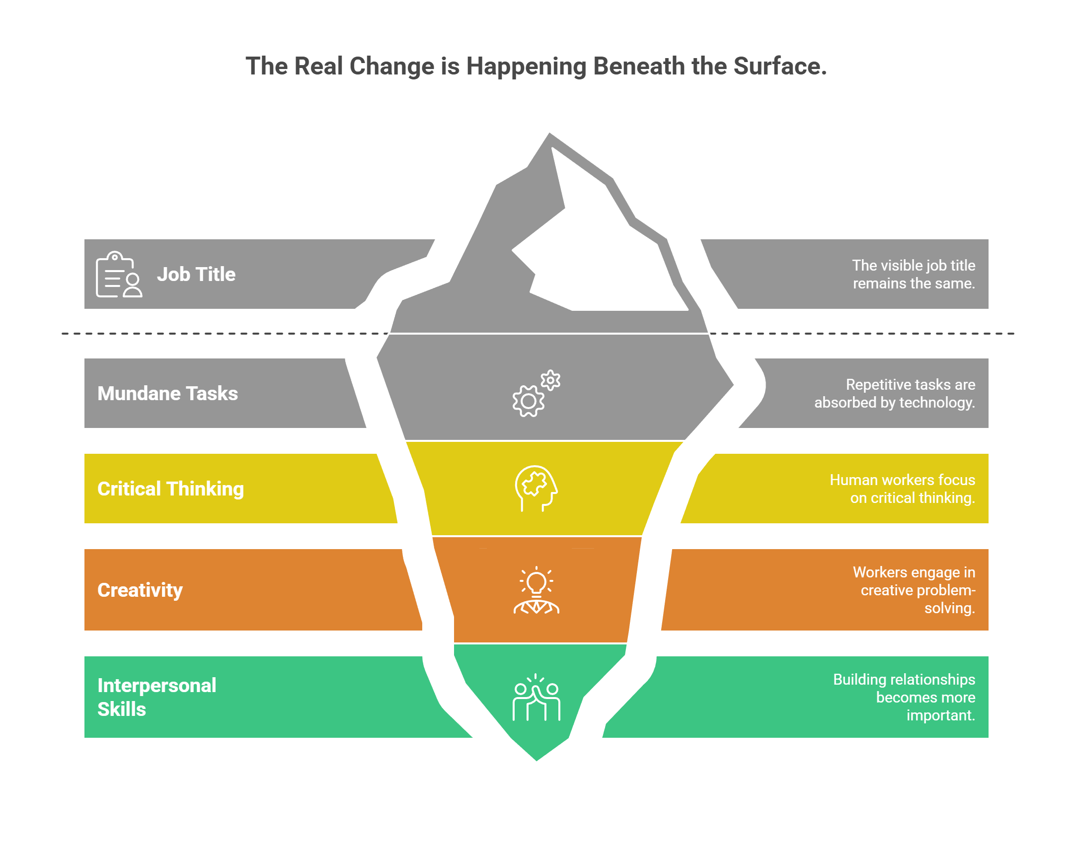 The conversation needs to evolve. We must move past the fear of the visible tip of the iceberg and focus our energy on understanding and navigating the immense, hidden mass below. The question is no longer *if* AI will change your job, but *how* it is already changing it. Are you prepared to look below the surface?